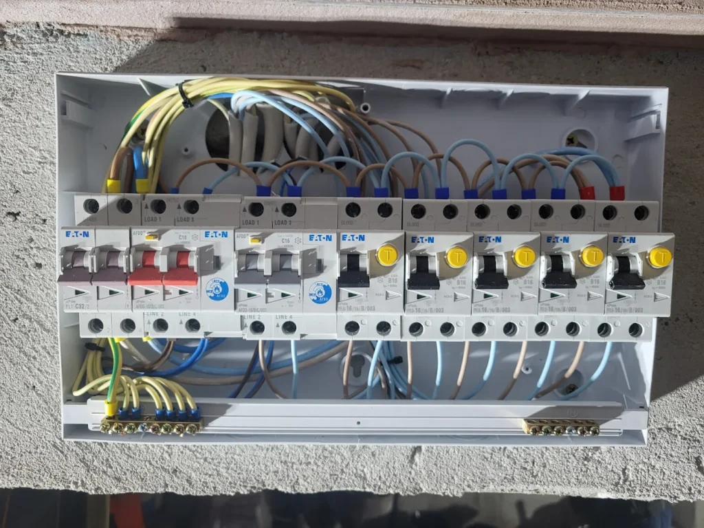 Executăm instalații electrice pentru case, apartamente, hale, spații comerciale și alte construcții, cu accent pe siguranță, organizare și execuție corectă.
